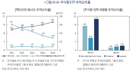 32) 이는 패시브 ETF에서 차지하는 주식형의 높은 비중을 생각해 볼 때 이례적이다. 2025년 5월말 기준 패시브 주식형이 패시브 ETF 전체에서 차지하는 비중은 67%다.