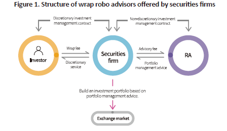 The regulation requiring the performance of the duty to explain in a face-to-face setting for discretionary services appears to have impacts on the structure of robo advisory wealth management because that regulation kept asset managers and investment advisors from offering robo advisors directly to clients, even if they were to develop robo advisors. Asset managers and investment advisors, therefore, had no choice but to collaborate with banks or securities firms that have face-to-face channels. For the same reason, a number of robo advisors chose to remain tech firms, rather than becoming direct providers of wealth management services. For example, most wrap robo advisors offered by securities firms manage client assets, relying on investment advice from robo advisors developed by asset managers or investment advisors. This also holds true for banks. Five banks have formed technological alliances with one tech firm, which was spun off from an asset management firm that developed a robo advisor on its own.