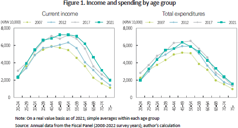 Research suggests that spending levels among older Korean households are generally insufficient to maintain an adequate standard of living (Kim et al., 2025),4) which could be attributed to the following factors. Rising life expectancy compared to previous generations has introduced greater uncertainty about future financial needs. This uncertainty may pressure retirees, even those with supplementary income sources after retiring from their primary occupations, to curtail current consumption in anticipation of future living and medical expenses.