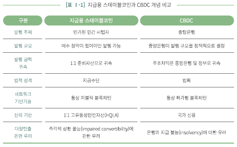 — 지급용 스테이블코인은 CBDC와 다음과 같이 구별됨