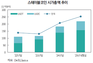 — 스테이블코인 시장은 트럼프 행정부의 일반 지급결제용 스테이블코인(Payment Stablecoin) 관련 제도적 뒷받침에 힘입어 높은 성장세를 지속3)