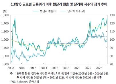 1) 강현주, 2024, 달러화 강세 장기화에 따른 원달러 환율 변동 및 시사점, 자본시장연구원 『자본시장포커스』 2024-11호
