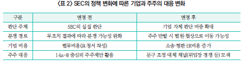 미국 SEC의 정책 변화에 따른 기업의 주주제안 안건 상정 재량확대