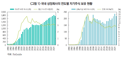 이러한 자기주식 보유 현상은 일시적인 것이 아니라 장기간 지속되어 온 구조적 특성이다(<그림 1> 참조).1)