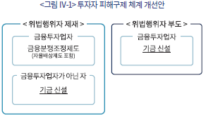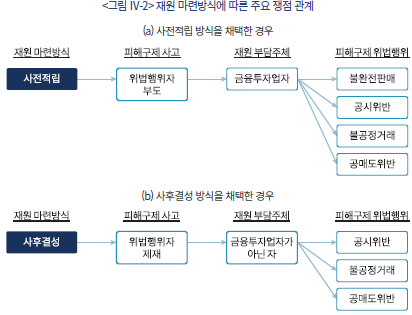 구체적으로는 위법행위자가 금융투자업자가 아닌 경우에는 사후결성 방식으로 기금을 마련하여 해당 위법행위자가 투자자 피해에 대해 배상 책임을 지도록 하는 것이 필요하다. 이는 위법행위자가 금융투자업자인 경우 위법행위에 따른 투자자 피해를 배상하도록 결정하는 금융분쟁조정제도와도 정합적이다.