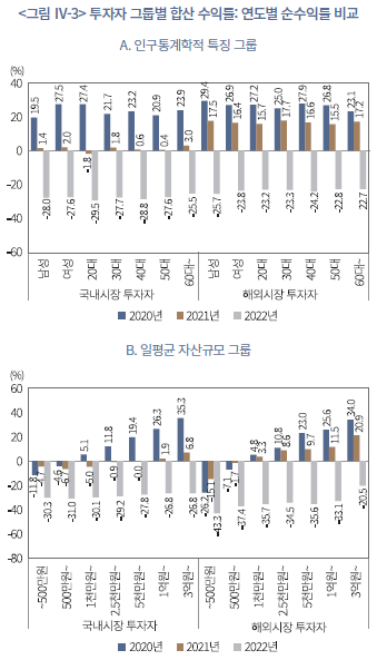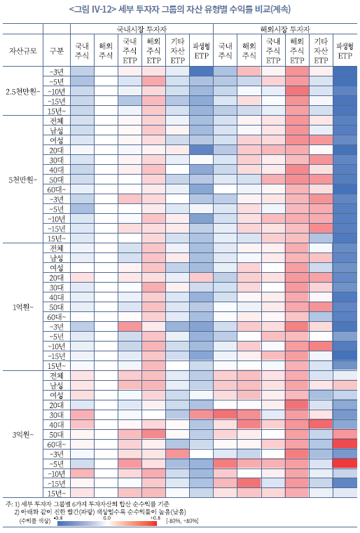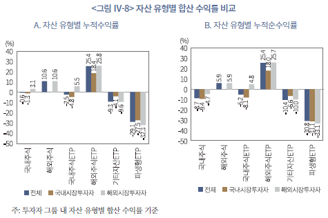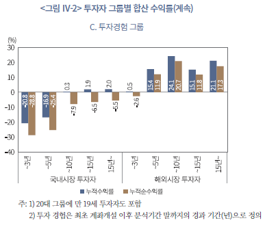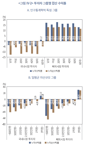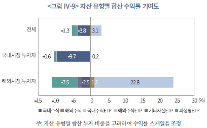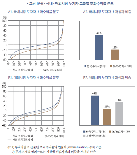 18) 여기서 국내시장 투자자의 투자성과는 국내주식과 국내상장 ETP를 합산한 결과이고, 해외시장 투자자는 국내상장 ETP와 국내주식도 포함된 수익률이다.
