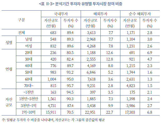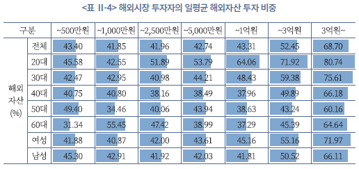 32) 해외자산에 100% 투자하는 투자자는 이 분석에서 제외하였고, 이는 해외시장 투자자 표본 중 약 10%에 해당된다.