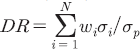 의 분자는 비(非)분산 상태에서의 평균적인 위험(상호 헤지 효과가 없다고 가정)을, 분모는 자산 간 수익률 상관관계를 고려한 위험 수준이다. 보유한 종목이 실질적으로 1개라면(