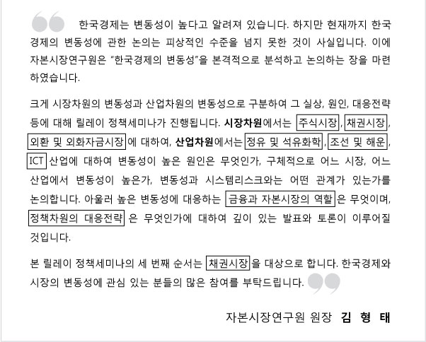 『한국 채권시장의 변동성: 원인과 대응전략』 릴레이 정책세미나