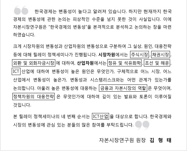 『한국 ICT산업의 변동성: 원인과 대응전략』 릴레이 정책세미나