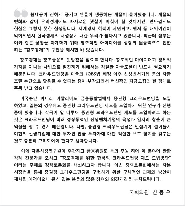 『창조경제를 위한 한국형 크라우드펀딩 제도 도입방안』 정책토론회