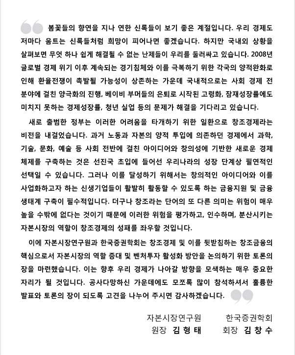 『창조금융 활성화를 위한 자본시장의 역할』 정책심포지엄