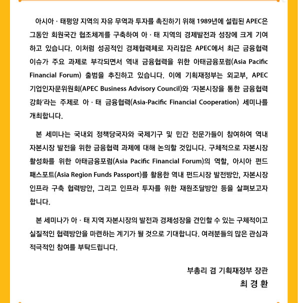 `자본시장을 통한 금융협력 강화` 아ㆍ태 금융협력 세미나