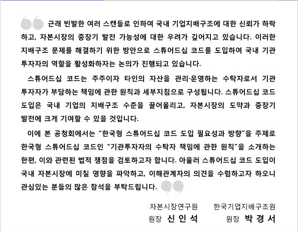 - 주최 :자본시장연구원, 한국기업지배구조원