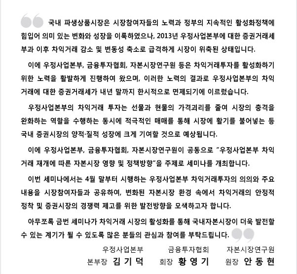 우정사업본부 차익거래 재개에 따른 자본시장 영향 및 정책방향 세미나
