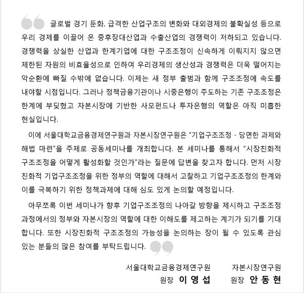 - 주최 :서울대학교금융경제연구원, 자본시장연구원