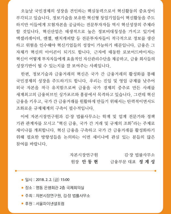 - 주최 :자본시장연구원, 김ㆍ장 법률사무소