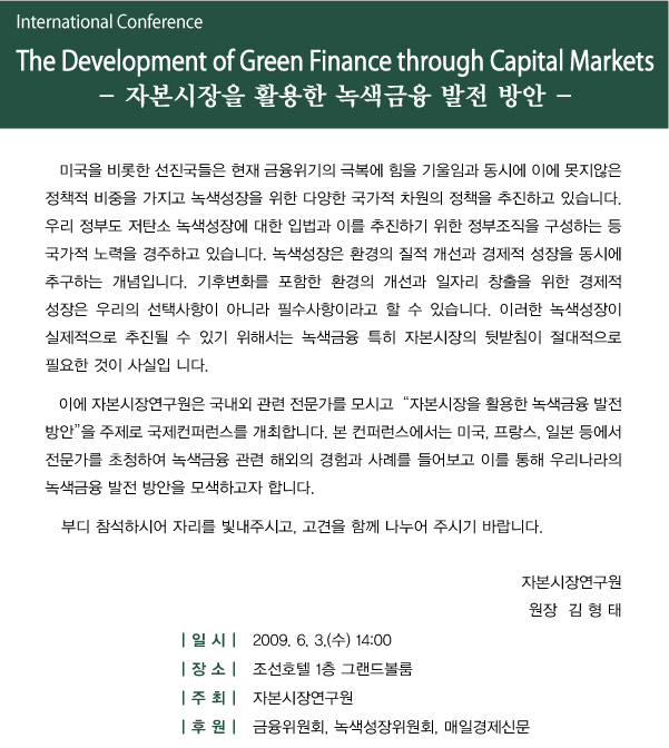 「자본시장을 활용한 녹색금융 발전 방안」국제컨퍼런스