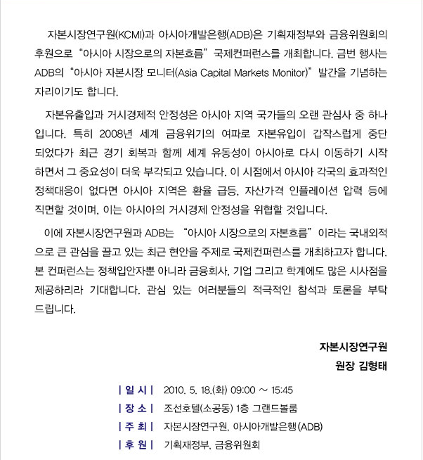 「아시아 시장으로의 자본흐름」국제컨퍼런스