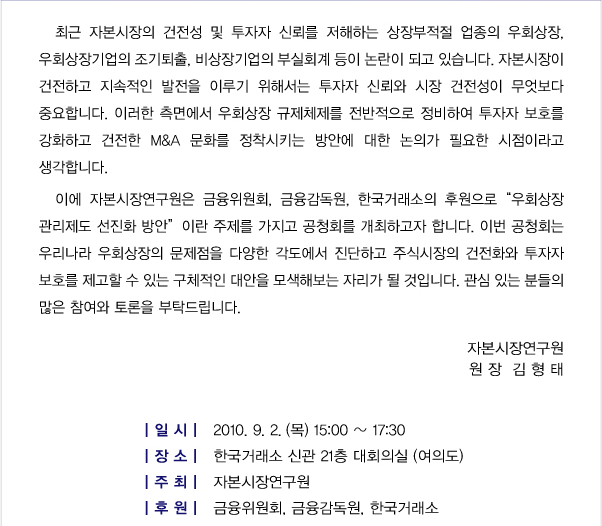「우회상장 관리제도 선진화 방안」공청회
