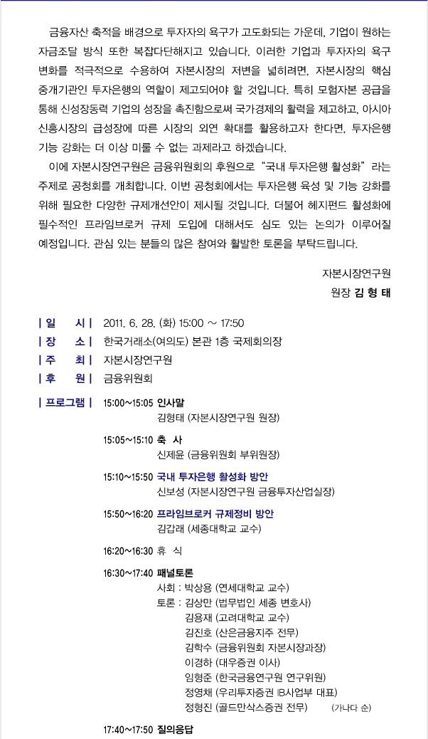 「국내 투자은행 활성화」를 위한 공청회