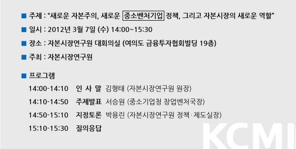 자본시장연구원 대회의실(여의도 금융투자협회빌딩 19층)